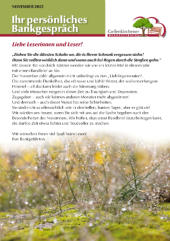 bekannt gemacht. Falls Sie keine Einladung erhalten haben und gerne an einem Bankgespräch